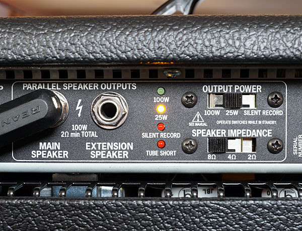 Über eine kleine Besonderheit verfügt der Bassman: Er kann im Silent Record Modus betrieben werden. Ist dieser Betriebszustand gewählt, müssen (bei Röhrenamps eher